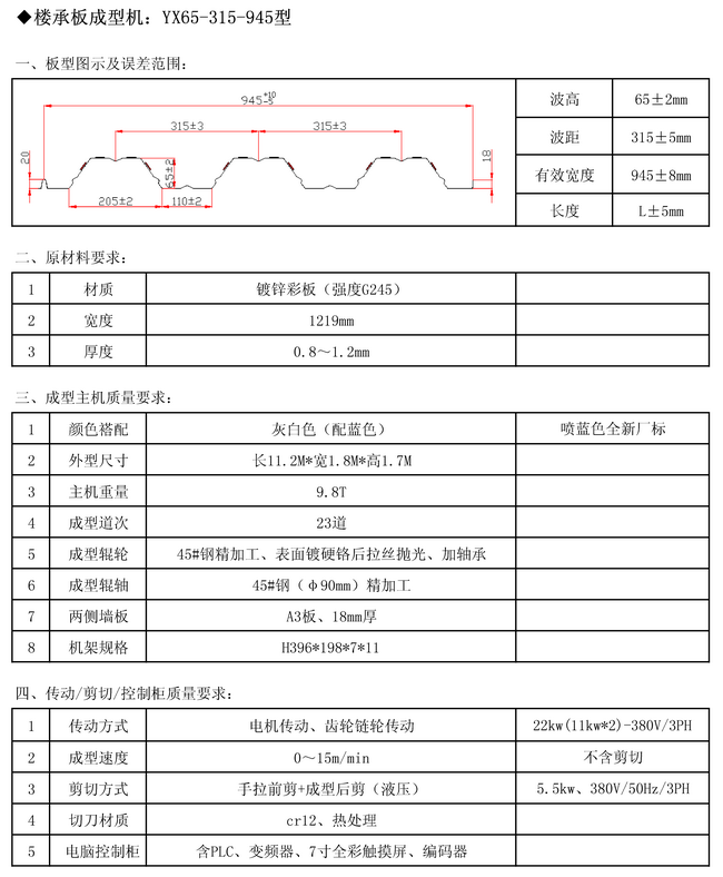 YX65-315-945 樓承板成型機